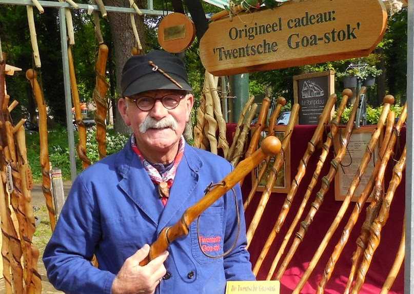 Het Twentsche woord voor gaan is goan, het is een Nedersaksischeschrijfwijze. Een Goa-stok is een oude Twentsche wandelstok, dus een stok om te gaan. Je kunt de Twentsche stok herkennen aan de gekrulde vorm. De gedraaide vorm aan de stok wordt gevormd door de kamperfoelie en de jonge ranken die houvast nodig hebben aan de plant. De jonge ranken groeien met de zon mee en omdat ze samen groeien, knellen ze elkaar af.