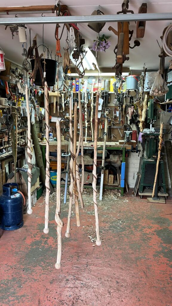 Als ik een mooie stok in het bos of in een houtwal zie, vraag ik bij de eigenaar toestemming om te zagen. Vervolgens zaag ik de stok op een lengte van 1.20 meter. De gangbare lengte van een Twentsche Goa-stok is 1.20 meter, maar op verzoek wil ik ook wel langere exemplaren maken. Als de stok is gezaagd, ga ik de stok ontdoen van de bast (schillen). Vervolgens leg ik de stok te drogen. Het duurt ruim een jaar voordat de stok geheel droog is.